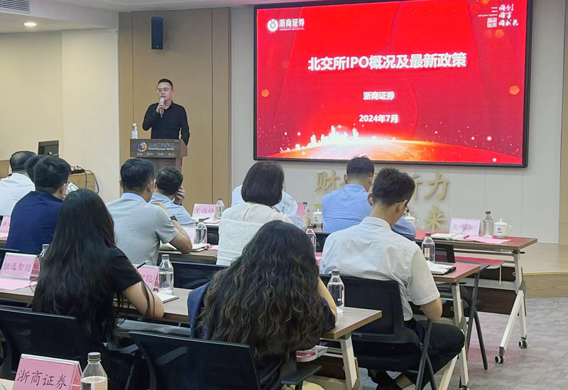 浙商證券煙臺(tái)營(yíng)業(yè)部總經(jīng)理王鵬圍繞北交所IPO最新政策及投融資概況展開交流分享。他通過(guò)成功上市案例的分析,講解了上市規(guī)律、上市邏輯以及如何降低上市財(cái)務(wù)成本和時(shí)間成本、規(guī)避上市失敗風(fēng)險(xiǎn)等方面內(nèi)容。
