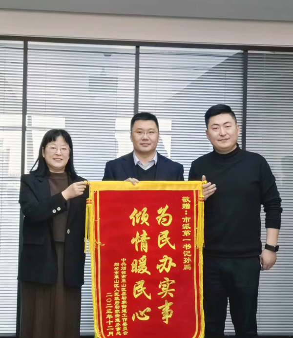 1月10日,萊山區(qū)初家街道黨工委副書(shū)記、辦事處主任張志遠(yuǎn)和界牌村黨支部書(shū)記、村委會(huì)主任黃世會(huì)一行將印有“扶志扶貧共舉 全心全力為民”“駐村幫扶辦實(shí)事 情系群眾解民憂”字樣的錦旗送到煙臺(tái)財(cái)金集團(tuán),對(duì)集團(tuán)和市派第一書(shū)記孫鵬對(duì)界牌村給予的大力支持和真情幫扶表示衷心感謝。集團(tuán)黨委副書(shū)記、工會(huì)主席連瑞渝,紀(jì)委書(shū)記房瑞田、黨群工作部負(fù)責(zé)人安少帥及市派第一書(shū)記孫鵬接受錦旗,并與包村單位深入開(kāi)展交流座談。